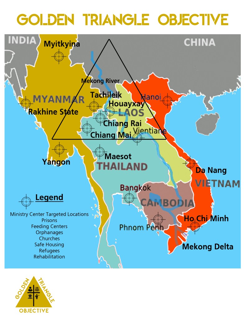 GOLDEN TRIANGLE OBJECTIVE is a Christian project to thwart the PERVERSION • POVERTY • PRISONS of the Golden Triangle, through PLANTING of churches and Christian Education. We also have a team of rescuers to help deliver young children from human trafficking.